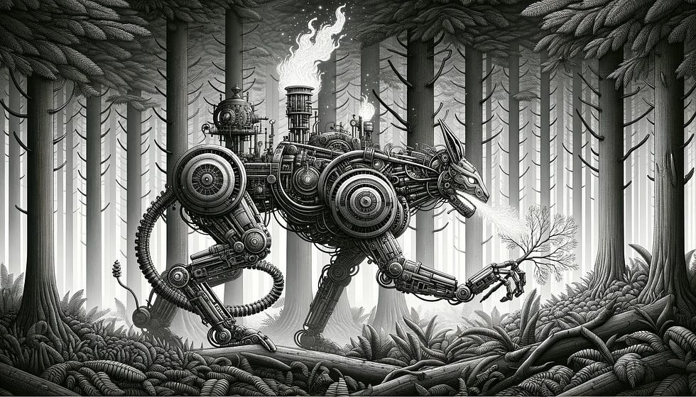 Bitcoin is more than money, more than an asset, and more than a store of value. Bitcoin is a Prime Mover, an enabler and it ignites imaginations. It certainly fueled an idea in my mind. The idea integrates sensors, computational prowess, actuated machinery, power conversion, and electronic communications to form an autonomous, machined creature roaming forests and harvesting the most widespread and least energy-dense fuel source available. I call it the Forest Walker and it eats wood, and mines Bitcoin.